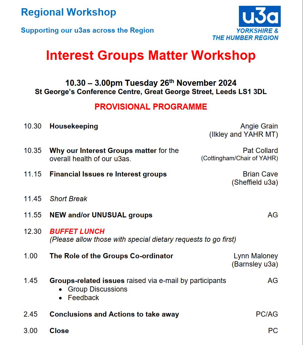 3rd November 2025YAHR Workshop “The Future of our u3a”Information including downloads
